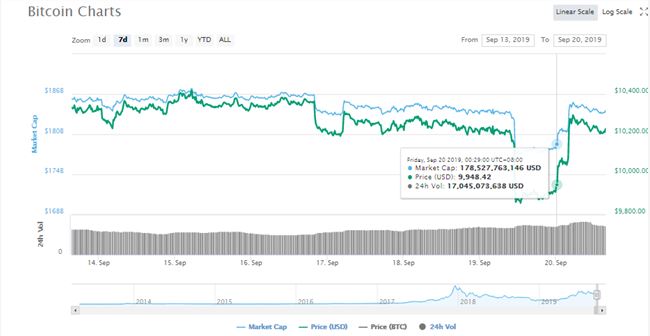 根据coinmarketcap的数据,今天早上比特币价格再次上涨至10,000美元,并逐渐稳步上升。